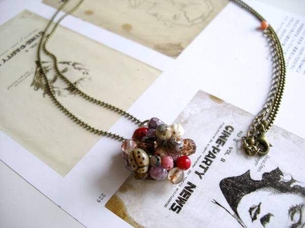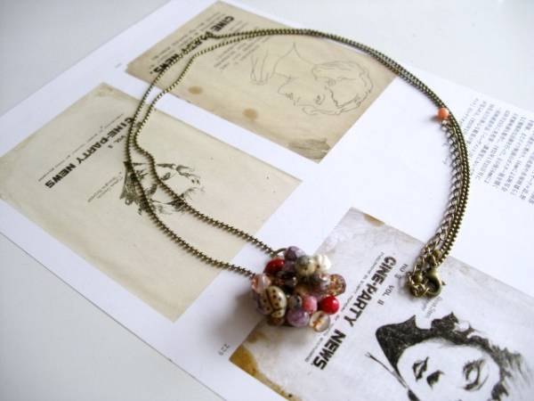 女の子の時間・・シリーズです♪やさしい色を集めて・・小さな天然石やチェコビーズを集めて可憐な表情のネックレスです♪ターコイズやアフリカンオパールや珊瑚やアメジストなど3ミリから4ミリ位の小粒の天然石は チェコビーズやてんとう虫のビーズを合わせてシャワーヘッドに留めつけています♪ヘッドの大きさは3センチ位です♪華奢なボールチェーンを合わせました♪ 長さは80センチ+アジャスター10センチで最長90センチ位です♪お揃いのネックレスやリングも出品しています♪シンプルで長く着けていただける デザイ ンを考えて作りました♪ハンドメイドをご理解頂いてノークレーム、ノーリターンでお願いします