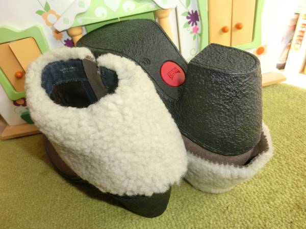 ムートン(フェイク)部分の裏側は、裏革の焦げ茶色。