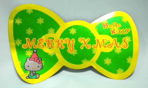 売切 ハローキティ リボンステッカー MERRY X MAS マグネットタイプ 未使用保管品 FO、メリークリスマス、日本製、緑色、ミラータイプステッカー、2009年、ドアに貼ったり、冷蔵庫、車に貼ったり、貼り付け取り外しが可能です。寸法:89×145mm、定価760円、 磁力を利用して取り付けるマグネットシートなので、ガラス及び樹脂や非鉄金属(アルミ)へは貼り付きません。 発送は定形外郵便で御願いいたします。まとめ購入の場合、ご予定を取引ナビでご連絡いただければ、お取り置き後、同梱発送いたしますので宜しくお願いいたします。分類KT