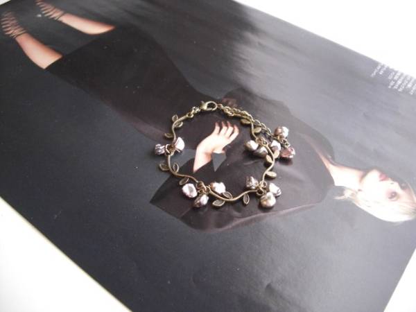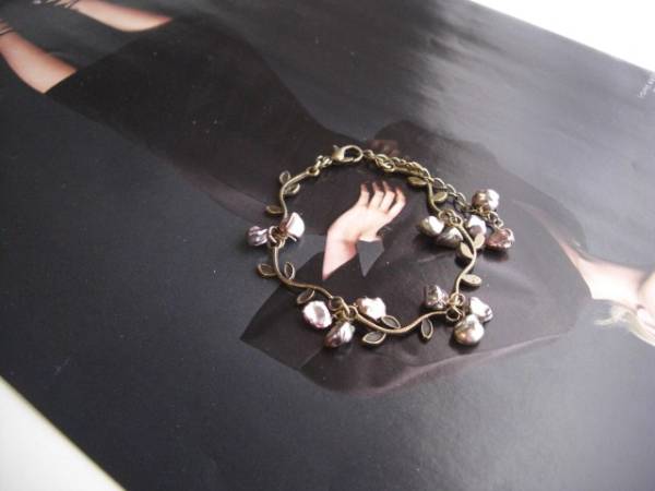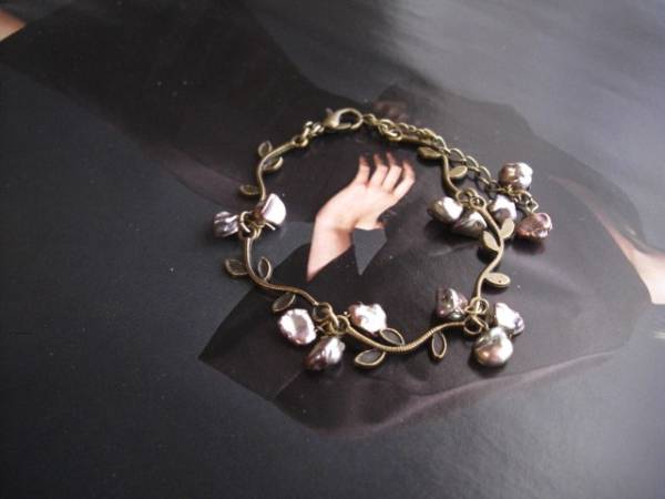 アンニュイ気分で・・シリーズです♪秋色パール・・シックなパープルグレーの芥子パールのブレスレットです♪クラシカルな木の葉のチャームを合わせてアン ティークな表情です♪芥子パー ルは7ミリから8ミリ位です♪長さは全長23センチ位で調節自由です♪お揃いのネックレスも出品していま す♪シンプルで飽きのこないいつまでも着けられるデザインを考えて作りました!ハンドメイド をご理解頂いてノークレーム、ノーリターンでお願いします