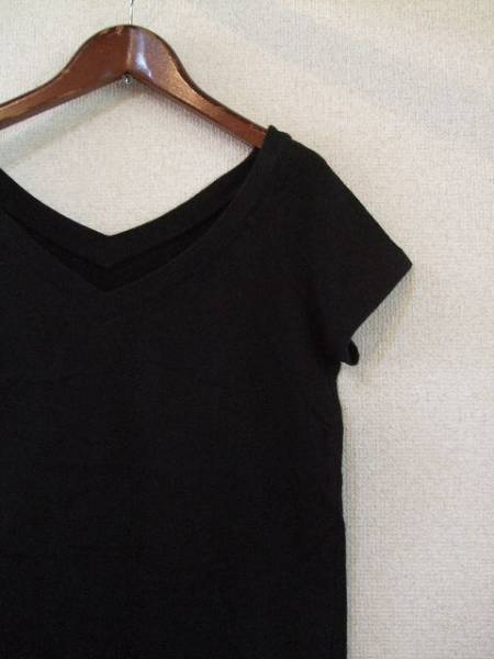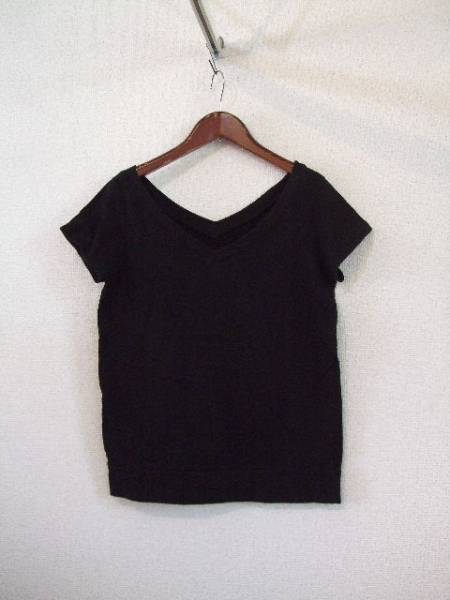 | 商品紹介 | 前後ともVネックになった半袖カットソーです。 色は黒で、形も使いやすく、他のアイテムと合わせやすいです。 《素材》 コットン95% ポリウレタン5% |