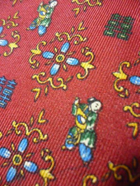 Lancelランセル フランス製 赤系ネクタイ シルク アジア