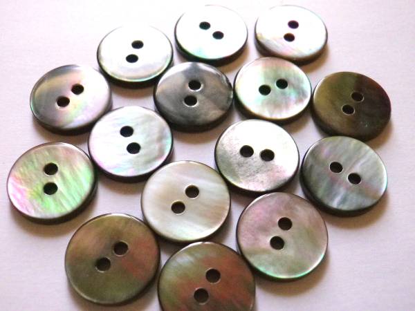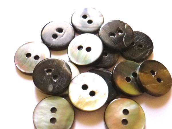 | 最高品質 黒蝶貝 ボタン まっ平ら 2ツ穴 №100 13mm 15個 | |||