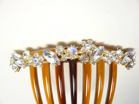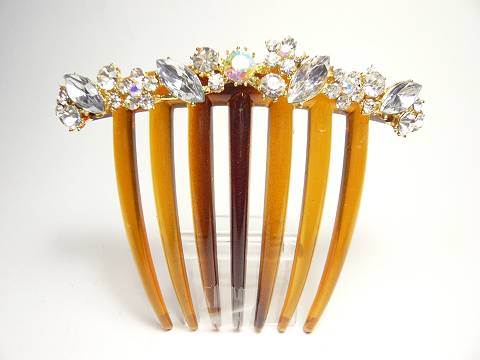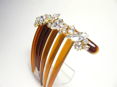 ★ キラキラ クリスタル ラインストーン 夜会巻きコーム 茶