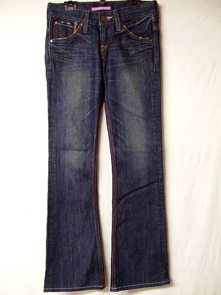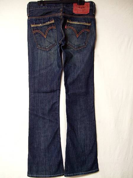 Levi's LADY STYLE LP607-0002です。日本製 画像のように濃紺ながらもとても良い色しています。美脚効果のブーツカット。◆表記サイズ…26インチ 実寸サイズ…ウエスト約70cm 股下約75.5cm 腿幅約23cm 裾幅約20cm◆USEDですがダメージ等無く状態は良好です。◆