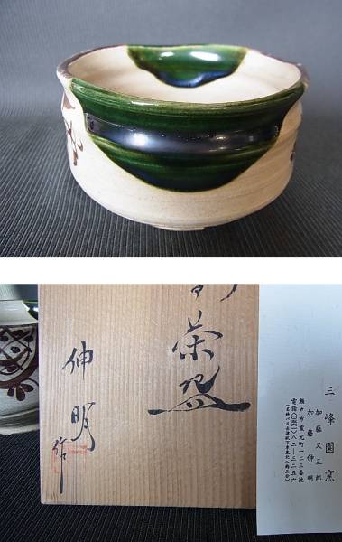 【C1506】在銘 赤津焼 伸明 茶碗 三峰園窯