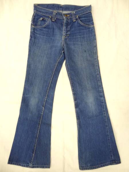 ビンテージ LEE リー 希少 70S インディゴ デニム ベルボトム フレア パンツ USA製 タロン ジッパー 色落ち タテ落ち 珍品 ウエスト W28