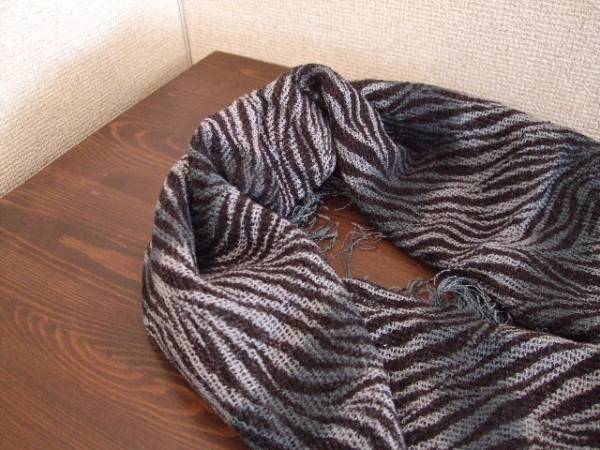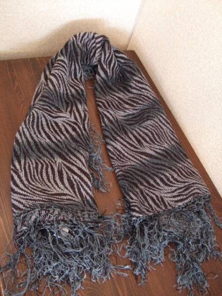 商品紹介 | 白×青ボーダーにトラ柄が個性的なストールです 形はほぼ正方形です。 レーヨン100% |