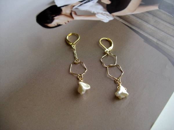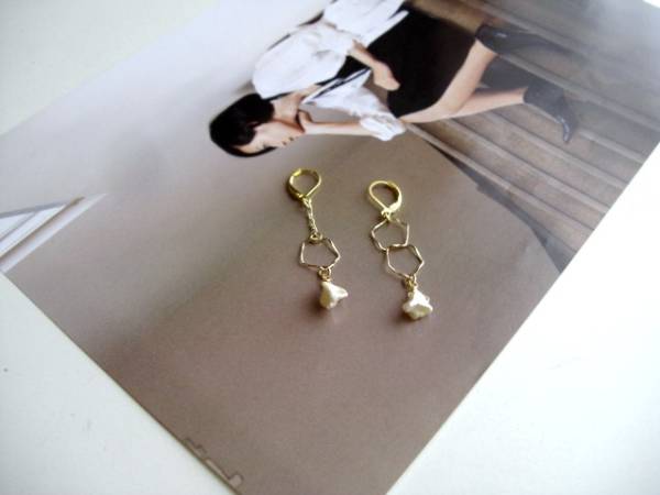 春の予感・・シリーズです♪お気に入りのチェーン・・個性的なデザインリングに芥子パールを合わせてスタイリッシュなピアスです♪少しだけデザイン違いにして遊んでみました♪12ミリ位のリングに10ミリ位の芥子パールを合わせました♪長さは5・5センチ位です♪イヤリングにも変更出来ます♪お揃いのネックレスやブレスレットも出品しています♪シンプルで飽きのこないいつまでも着けられるデザインを考えて作りました!ハンドメイドをご理解頂いてノークレーム、ノーリターンでお願いします