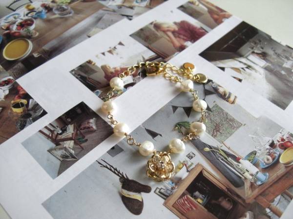 12月の首飾り・・シリーズです♪イヴの夜に・・やさしいオフホワイトの淡水パールのブレスレットです♪バロックの淡水パールにフラワーデザインのジルコニアを合わせました♪淡水パールは8ミリ位のバロックです♪ジルコニアのお花は15ミリ位です♪長さは全長23センチ位で調節自由です♪お揃いのネックレスも出品しています♪♪シンプルでいつまでも着けられるデザインを考えて作りました!ハンドメイドをご理解頂いてノークレーム、ノーリターンでお願いします