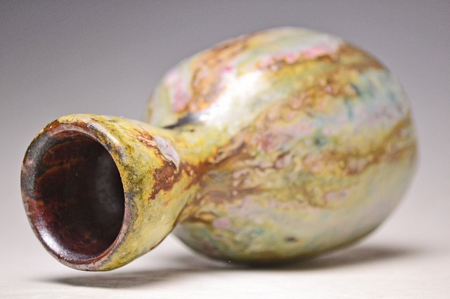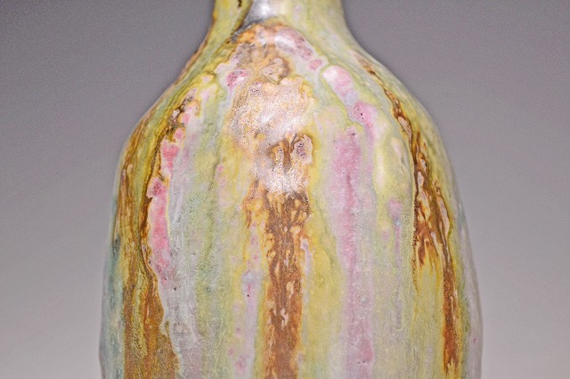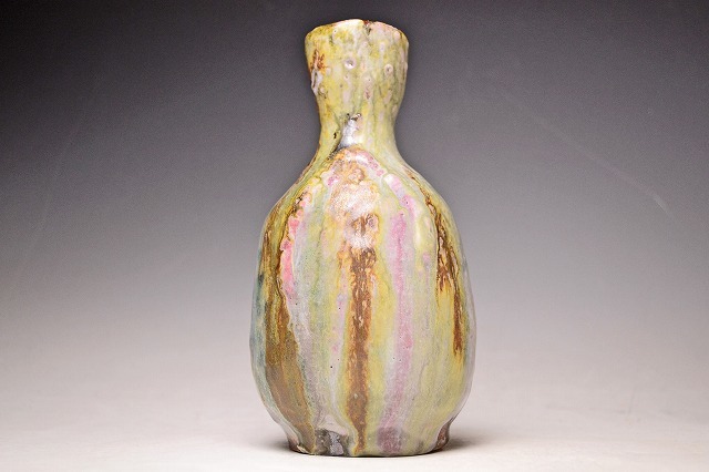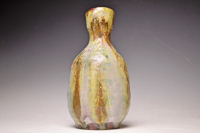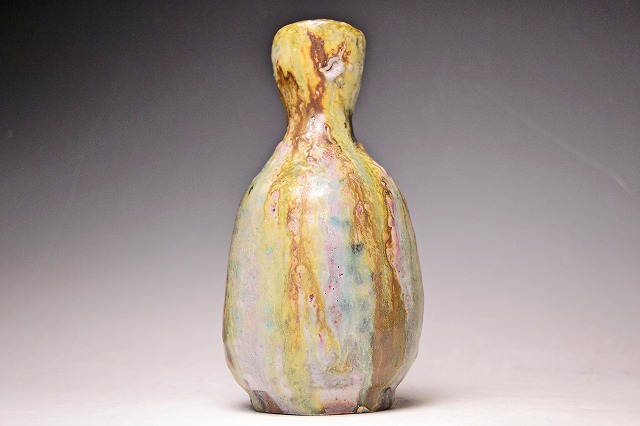 サイズは 95mmx高さ187mm です。 加藤唐九郎 氏に影響を受けた 村田珠光 氏の 作品 です。 得意の 窯変鼠志野 の作品 で、 釉薬と 自然釉が 重なりあって 独特の 景色を生んだ逸品 です。写真を参考の上入札ください。宅配便80サイズにて発送します。他にも多数出品してます。同梱 対応いたします。