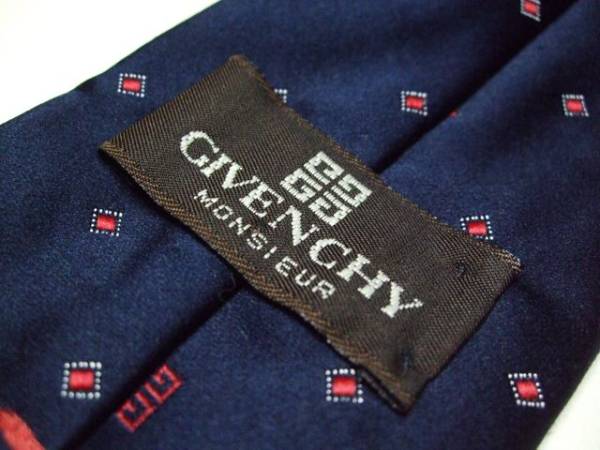 (^▽^)良品/ジバンシー/ネクタイ/GIVENCHY/青/赤/ひし形/⑨