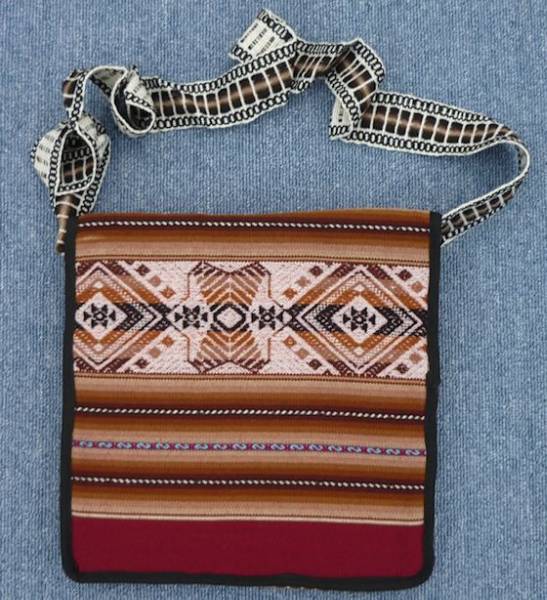 当商品は、ペルー民族織物(リャマ・インカ柄等)で作られたショルダーバッグです。
