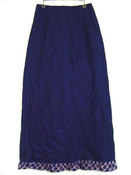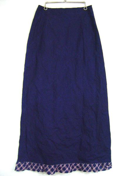 きれい目やカジュアルにオススメなスカート。 インディゴ染めのボディーで、全体的に斜めに切替しを施しております。 ウエスト左にはジッパー付きで、スソにはガーゼ素材のチェック柄フリルを施しております。 フリル付きスカートは年中履き回せ、トップスをあまり選ばず使い勝手のあるアイテムです。 |