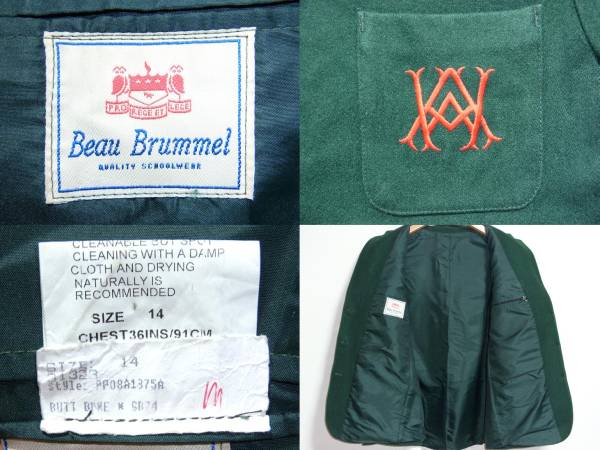 1980s ヴィンテージ Beau Brummel ウール スクールブレザー S程度 グリーン UK イギリス 古着