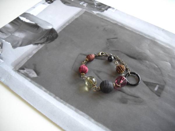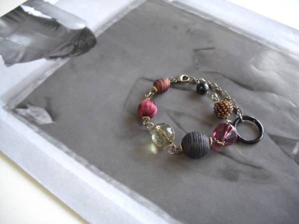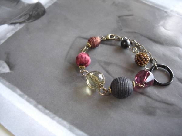 創作ノート・・シリーズです♪ボルドー色の章・・シックなボルドー系の異素材を集めたブレスレットです♪10ミリから20ミリ位までのチェコビーズや麻ビーズ、オニキスリングやマットオニキスやチェコビーズ、ビーズ玉やデザイン樹脂ビーズなど個性的な素材を集めてアンテークな表情です♪長さは全長23センチ位で調節自由です♪お揃いのネックレスも出品しています♪♪お揃いのシリーズも出品しています♪シンプルで長く着けていただけるデザインを考えて作りました♪ハンドメイドをご理解頂いてノークレーム、ノーリターンでお願いします