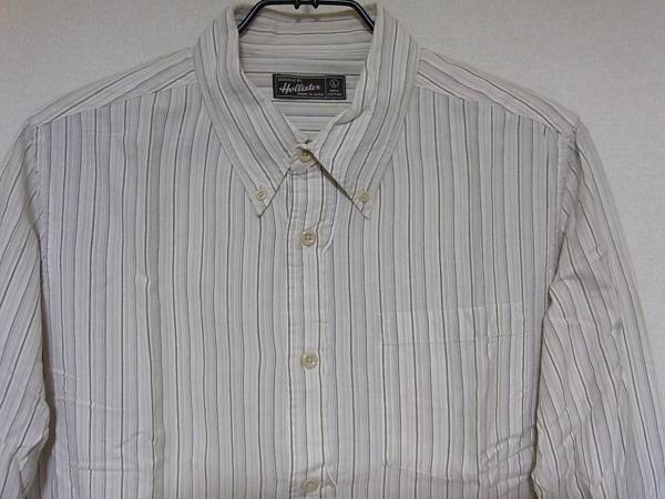 即決!USA古着●HOLLISTERホリスターストライプデザイン長袖シャツL!アメカジビンテージアメリカで買ってきましたユーズドのストライプデザイン長袖シャツです。タグは、アメリカの人気カジュアルブランド、HOLLISTERホリスターになります。カラーは写真を参考にして下さい。表記サイズLで着丈約74㎝、身幅約54cmです。素人採寸ですので多少の誤差はご了承お願い致します。状態は古着ですので、ある程度の着用感あります。特別目立つキズ、よごれはありませんが、あくまで古着として考えてください。古着にご理解のある方の入札お願いします。定形外郵便または、ゆうパック着払いでの発送になります。他にもいろいろ出品しています。よろしくお願いします。
