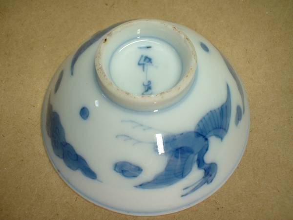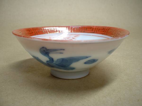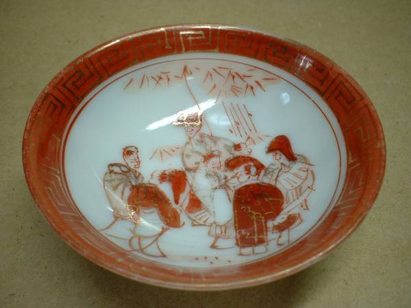 明治期頃の伊万里・竹林の七賢人図・盃です。裏は雲鶴が描かれています。高台内に一竹造の銘があります。口径7×底2.5×高3センチです。キズはありません。