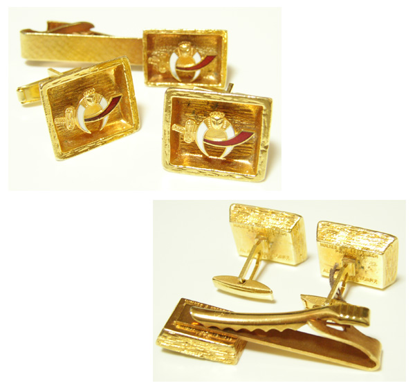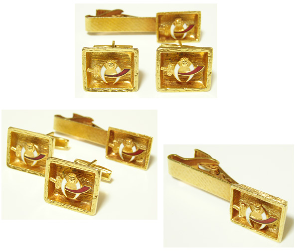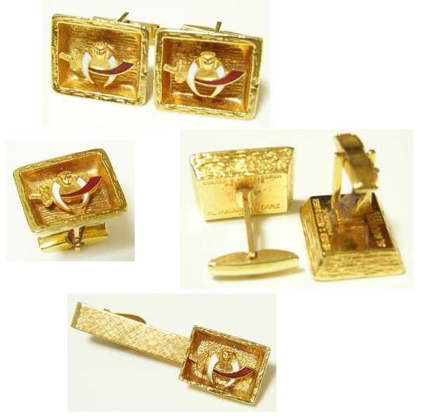 1973年 ヴィンテージ シュライナー カフス & タイクリップです。状態は、古い物ですので、擦れや薄い汚れがありますが、ビンテージの雰囲気ある物です。アメリカで購入しました。デザインや作りがとても可愛いです。裏にAL MALAIKAH TEMPLE 1973 等と印があります。古い物ですので、状態はそれなりですが、年代物の風格とレトロ感ある物です。カフスの縦1.9cm、横2.2cm、タイクリップの長さ5.4cm、縦1.5cmです。ビンテージ物とご理解頂いて、ノークレーム、ノーリターンでお願いします。