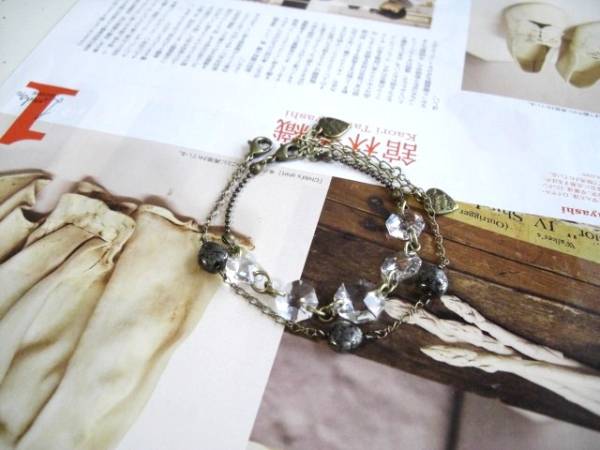 クレアの幸せ・・シリーズです♪モノトーンに恋して・・シックなパイライトとスワロのブレスレット2点セットです♪ブロンズ色のメタリックな輝きのパイライトにスワロのヘキサゴンを合わせてシックな大人の表情です♪♪真ん中のブレスレットは10ミリ、12ミリのスワロのヘキサゴンを繋いで合わせやすいデザインです♪長さは16センチ+アジャスター6センチで最長22センチ位です♪右のブレスレットは8ミリのハートのパイライトです♪長さは16センチ+アジャスター6センチで最長22センチ位です♪それぞれ単品やネックレスやイヤリングも出品しています♪シンプルで飽きのこないいつまでも着けられるデザインを考えて作りました!ハンドメイドをご理解頂いてノークレーム、ノーリターンでお願いします