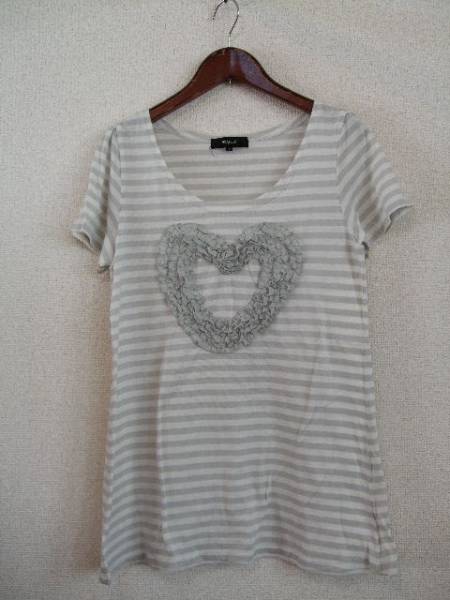 商品名 | Disparkボーダーハート柄シフォン付Tシャツ(USED)40513 |