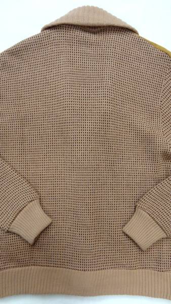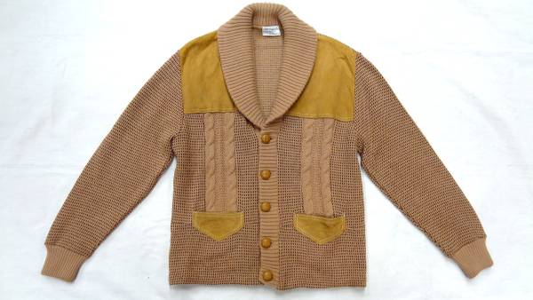 ビンテージ 70S レザー ニット コンビ デザイン ショールカラー ヘチマ襟 ドット 編み込み ニット カーディガン くるみ ボタン レア 珍品