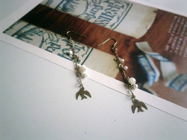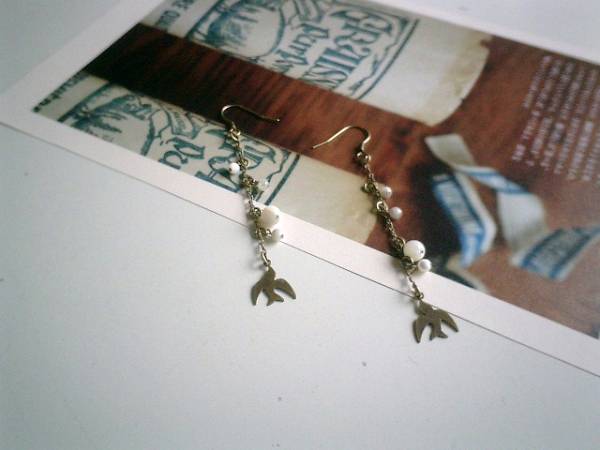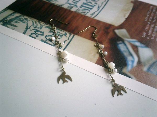 初夏のクローゼット・・シリーズです♪白いシェルと鳥さん・・爽やかなオフ・ホワイトのシェルと鳩さんのピアスです♪小粒のシェルにプレスチャームの鳩を合わせて可憐な表情です♪シェルは4ミリ、6ミリの丸玉、鳩は15ミリ位です♪長さは8センチ位です♪イヤリングにも変更出来ます♪お揃いのネックレスやブレスレットも出品しています♪♪シンプルで長く着けていただけるデザインを考えて作りました♪ハンドメイドをご理解頂いてノークレーム、ノーリターンでお願いします