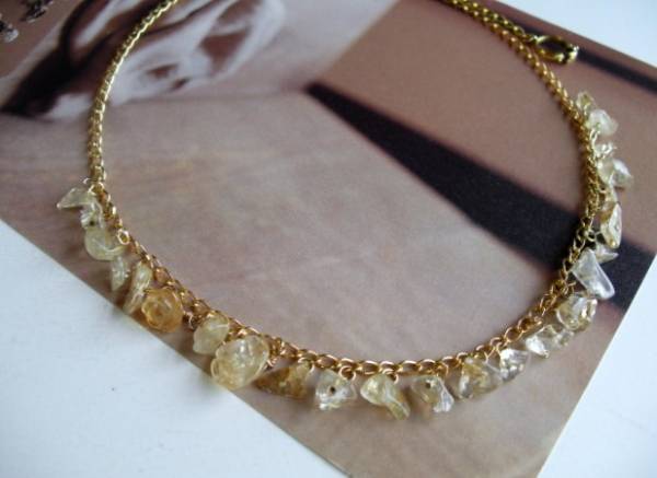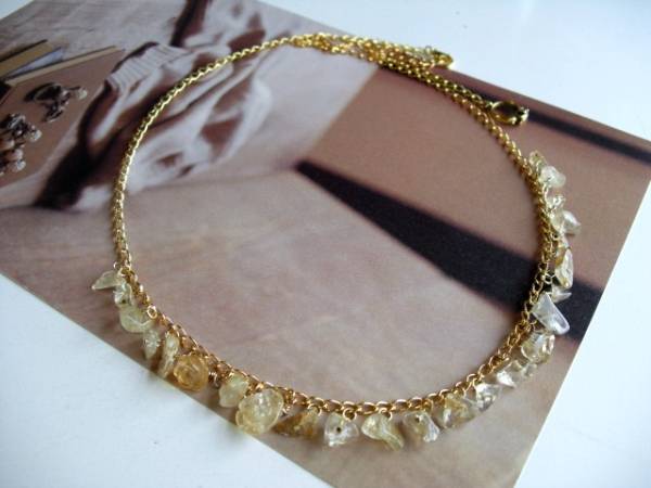 ミランダの日曜日・・シリーズです♪琥珀色の薔薇・・繊細なシトリンのネックレスです♪7ミリから11ミリ位までのシトリンのさざれは琥珀色の濃淡がアンニュイな表情です♪9ミリ、12ミリのシトリンの薔薇を添えてロマンチックしています♪長さは全長70センチ位で調節自由です♪お揃いのブレスレットやピアスも出品しています♪シンプルで飽きのこないいつまでも着けられるデザインを考えて作りました!ハンドメイドをご理解頂いてノークレーム、ノーリターンでお願いします