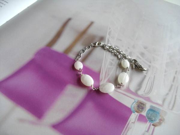 愛らしさのスパイス・・シリーズです♪幻想的な白・・神秘的な白のムーンストーンのブレスレットです♪オーバルのムーンストーンにデザインチェーンを合わせてロマンチックな表情です♪10×8ミリ、14×10ミリのオーバルのムーンストーンをデザインチェーンに繋ぎました♪長さは全長23センチ位で調節自由です♪お揃いのブレスレットやネックレス、ピアスも出品しています♪シンプルでいつまでも着けられるデザインを考えて作りました!♪ハンドメイドをご理解頂いてノークレーム、ノーリターンでお願いします