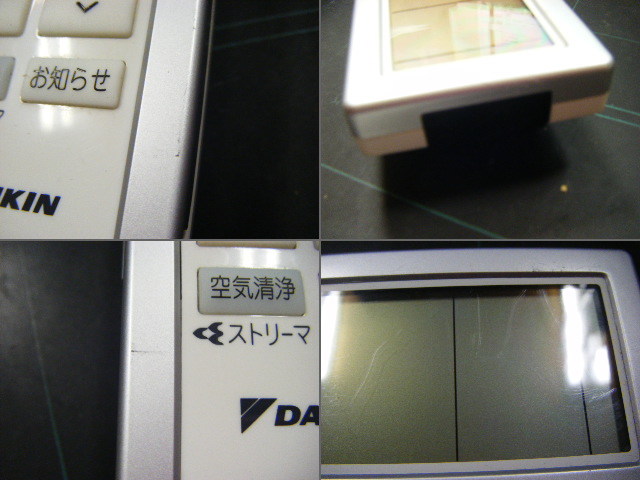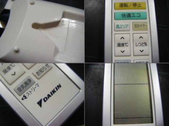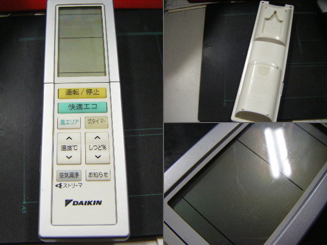 商品説明 | ご覧いただき有難うございます。今回は ダイキン エアコンリモコン ARC456A33 動作確認済み です。 中古品ですので使用傷・小傷あります。 画像で判断ください。 電池は付属しませんのでご用意ください。 封筒に入れての発送ですのでご理解の上入札お願いします。 | |