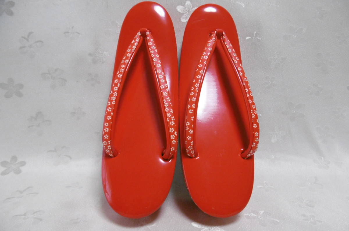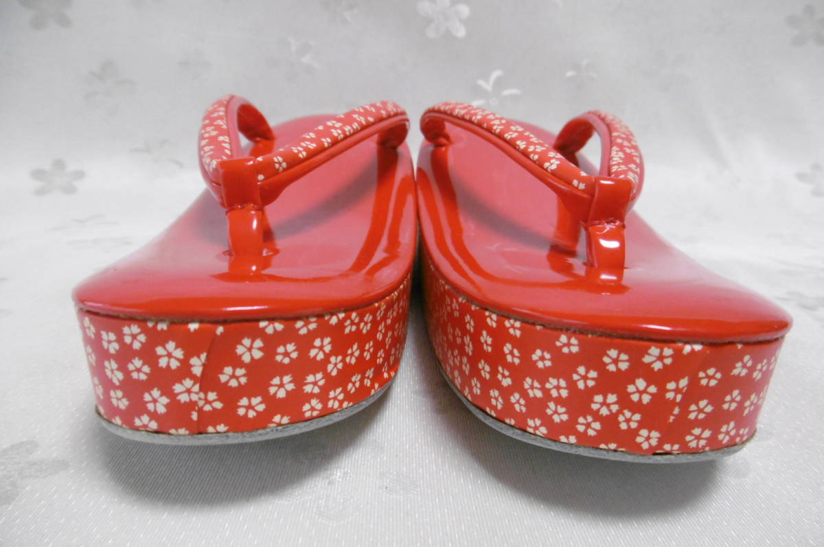 ★ 商品名 *未使用訳あり★草履★本革製品?合成皮革?★厚底★可愛い!赤色&白い小花柄 ぞうり★着物 和服 和物★Mサイズ23.5cm★4547 |
