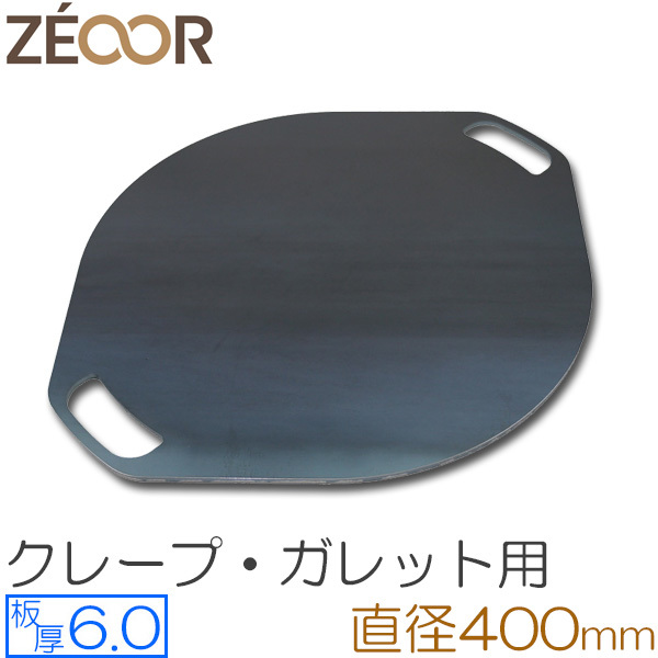 ZEOOR(ゼオール) 極厚クレープ鉄板 クレープメーカー 板厚6.0mm φ400mm取っ手付き CR60-25