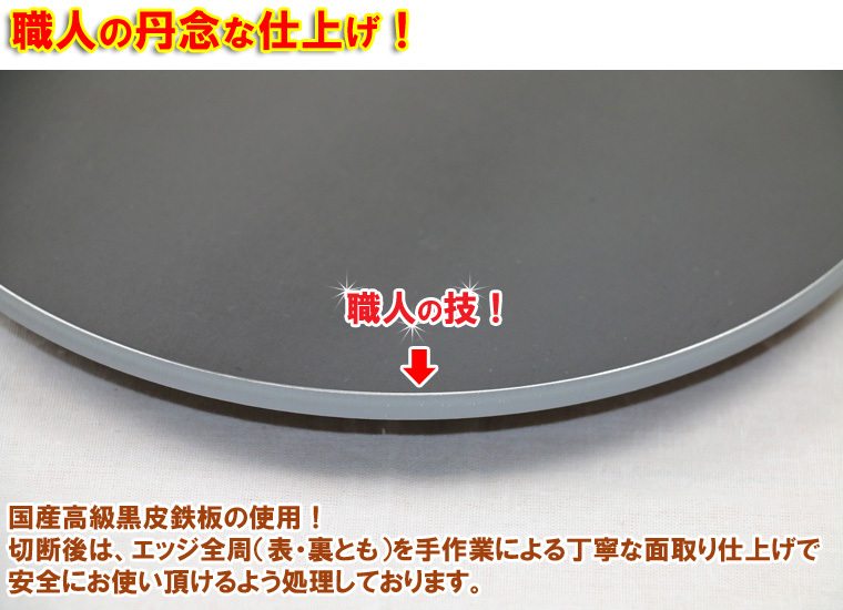 黒皮鉄板を使用しておりますが、素材の性質上、表面に色むら等ができる場合がございます。あらかじめご了承ください。(ご使用には問題ありません)