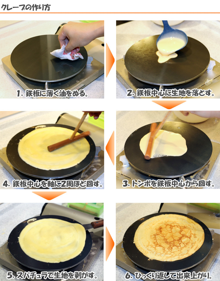 フライパンとは違う、焼き上がりの食感と味にこだわったクレープ専用の極厚鉄板となります。
