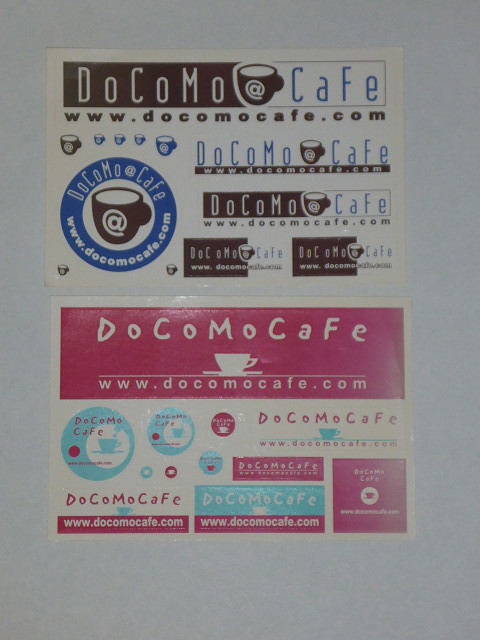 DoCoMo CaFe ステッカー(シール) 2枚組 をお譲りします。未使用品ですが、古い品のため下側のステッカー(シール)の右側周辺に色褪せがありますので写真でお確かめください。