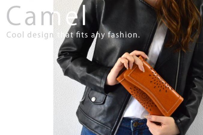 | ★☆長財布 男女兼用 スナップ パンチング ユニセックス メンズ レディース キャメルブラウン h0147ca☆★ | ||