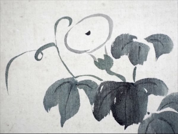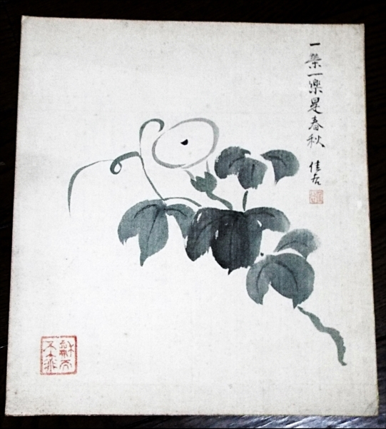 5498☆☆色紙・絹地花画賛・朝顔・署名佳谷不明・☆