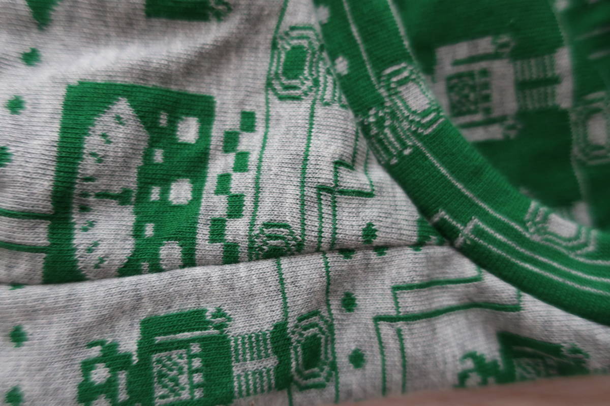 家庭用ミシンで作っているため、ニットの毛羽立ちがあります。
