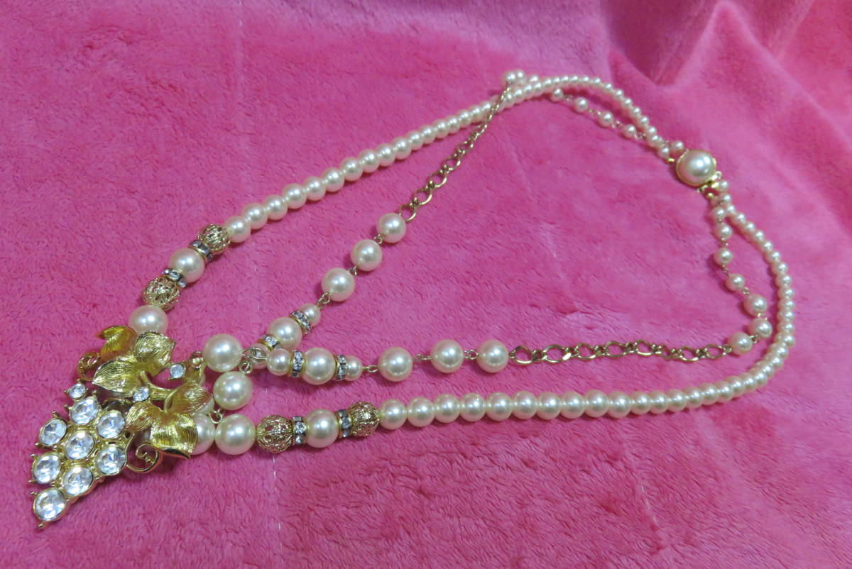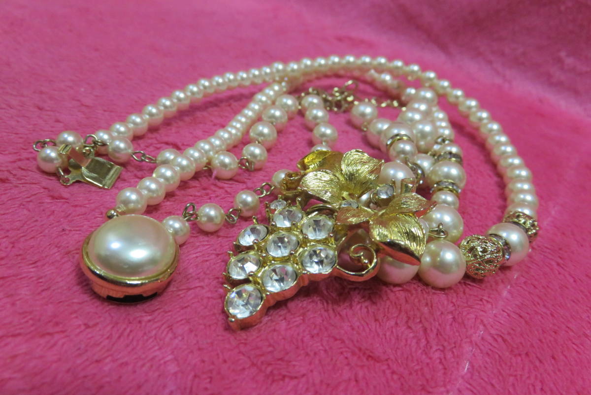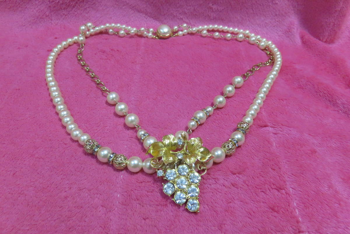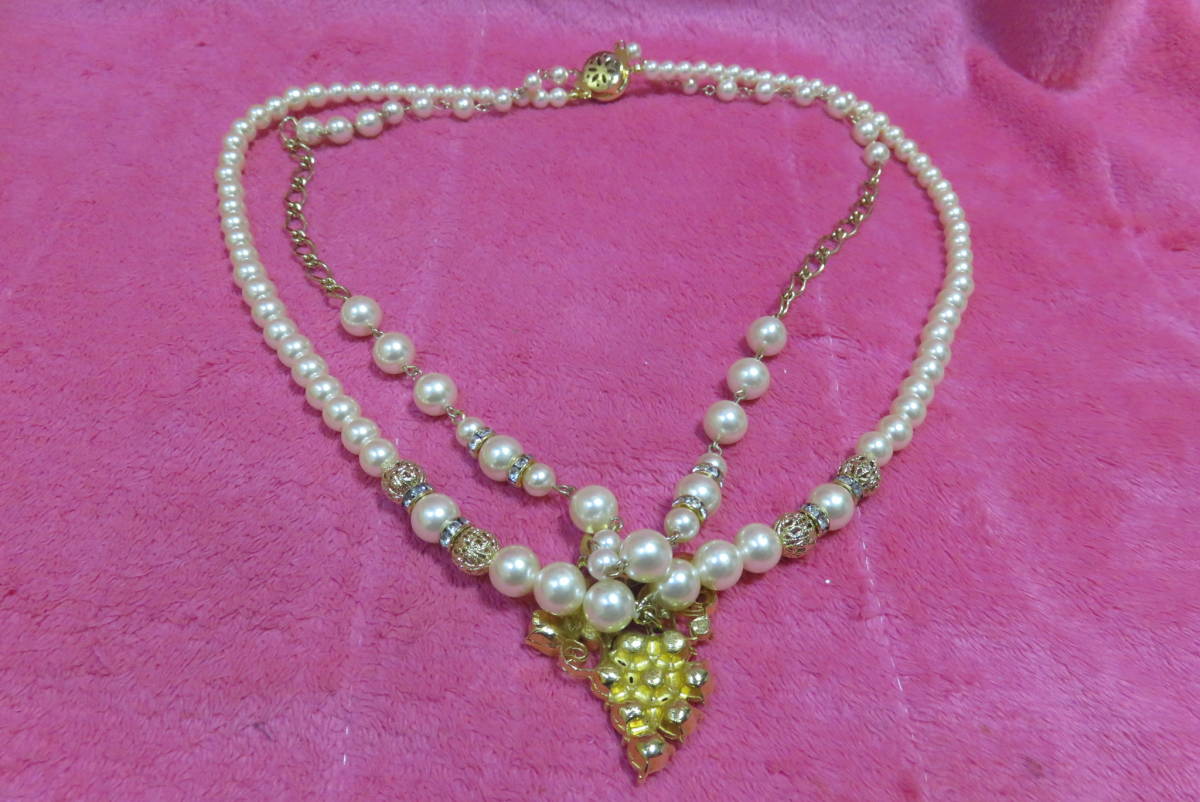 R1489   ネックレス  葡萄  パール調  ラインストーン
