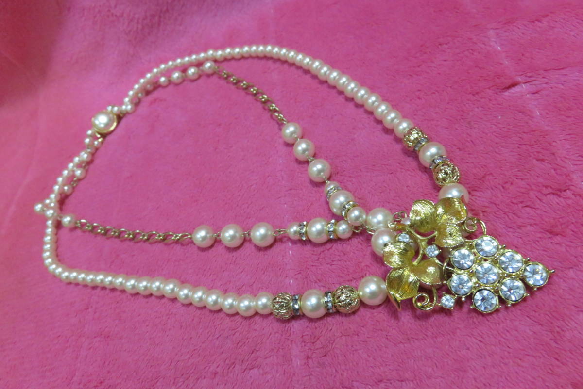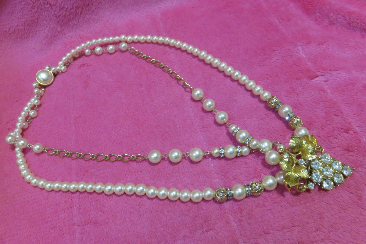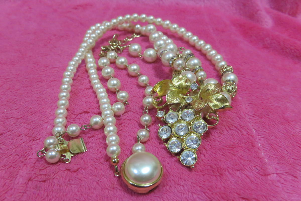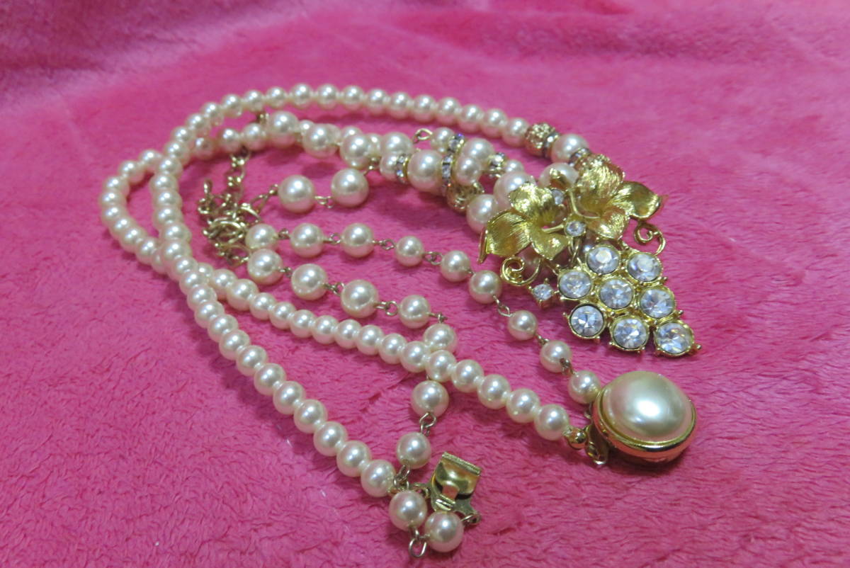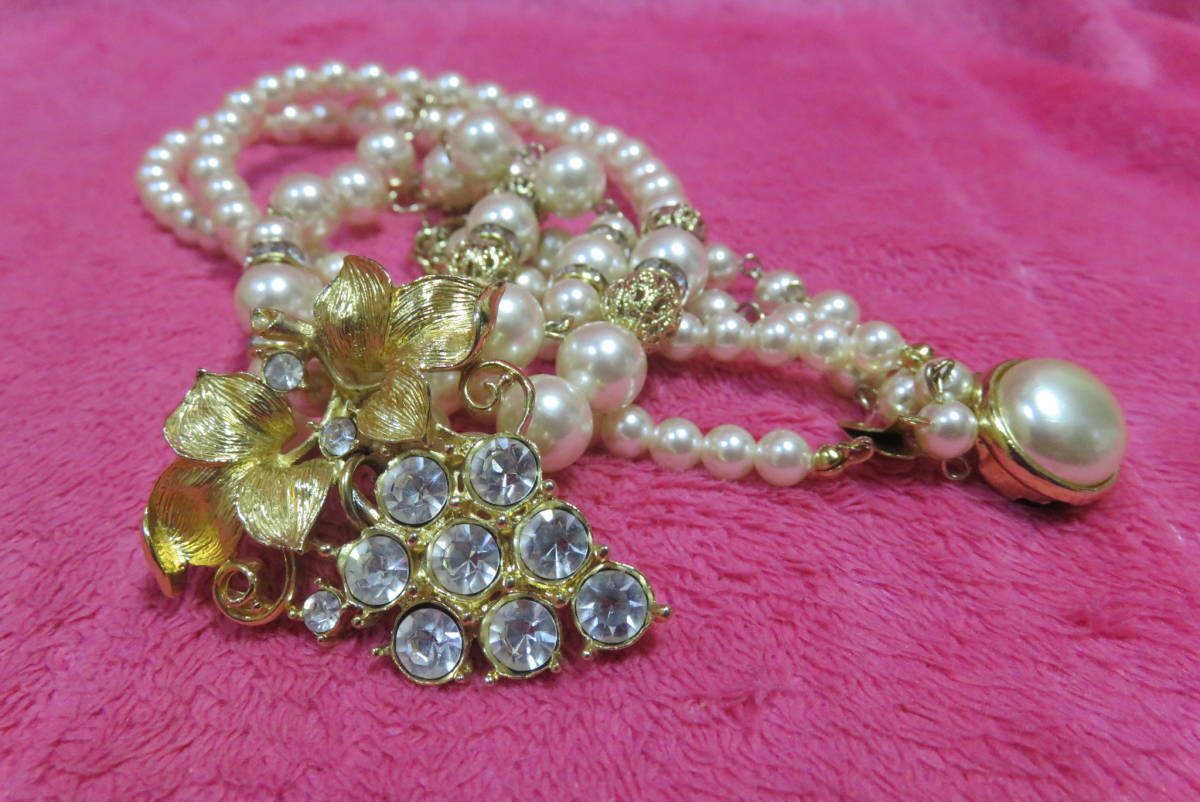 R1489   ネックレス  葡萄  パール調  ラインストーン