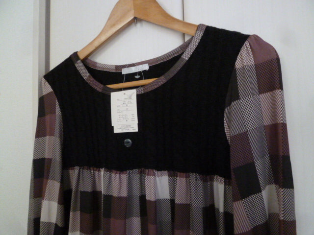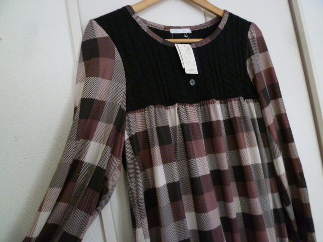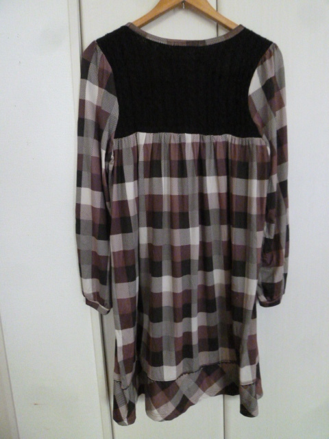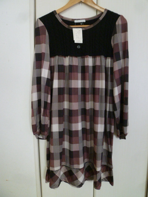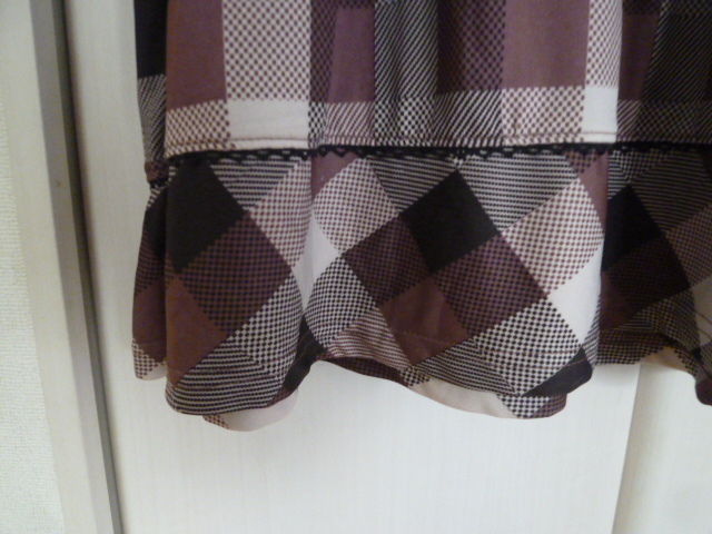 【新品】noble holiday○茶系格子チェック柄裾フリルワンピースM/ブラウン系長袖チュニック○OP1118