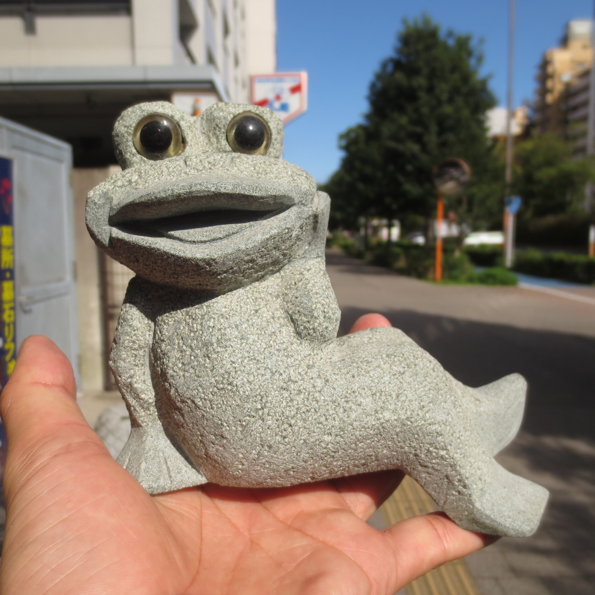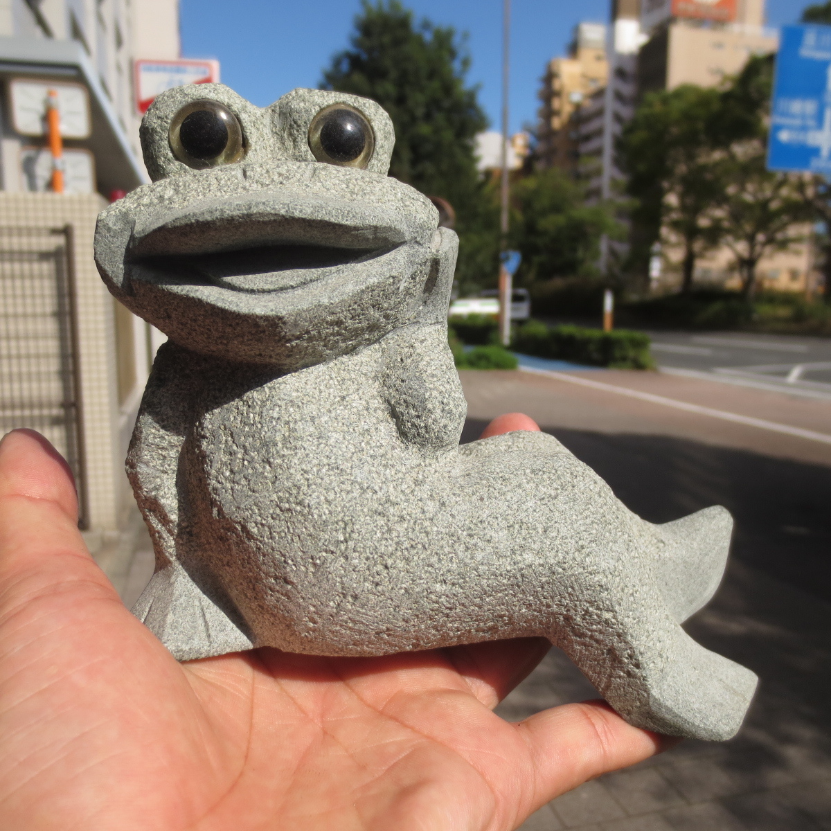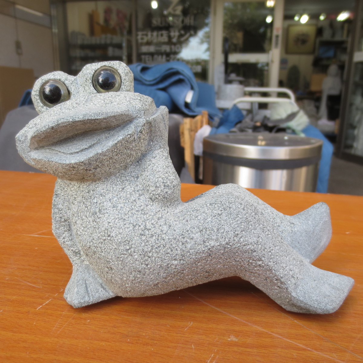 かえる カエル ひょうきん かわいい 置物 置き物 雑貨 御影石のオブジェ 石のフロッグ 送料無料 KE7A