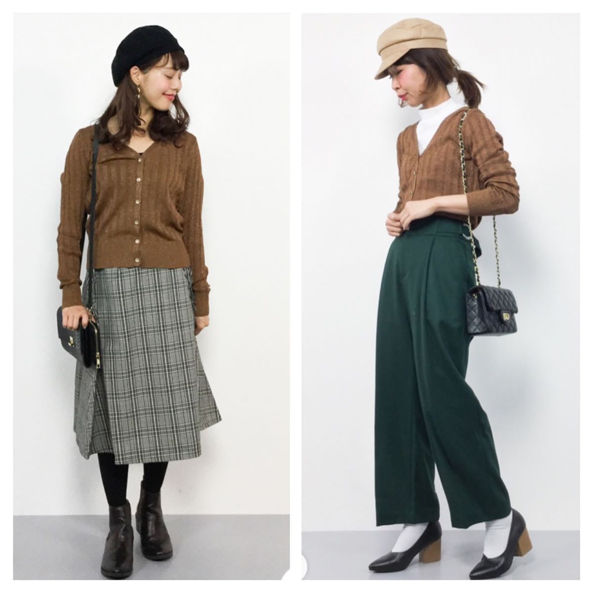 ラメ糸を織り込み表情を出したカーディガンはフィット感のあるリブ素材で女性らしいシルエットに。
