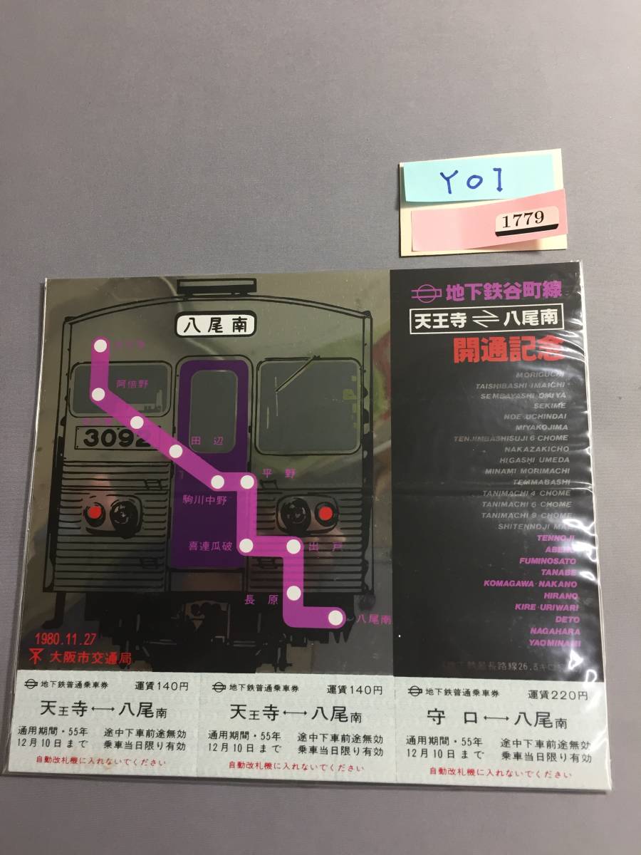 大阪市交通局 地下鉄天王寺~八尾南開通記念 1980年11月27日 乗車券3枚 【Y01-1779】