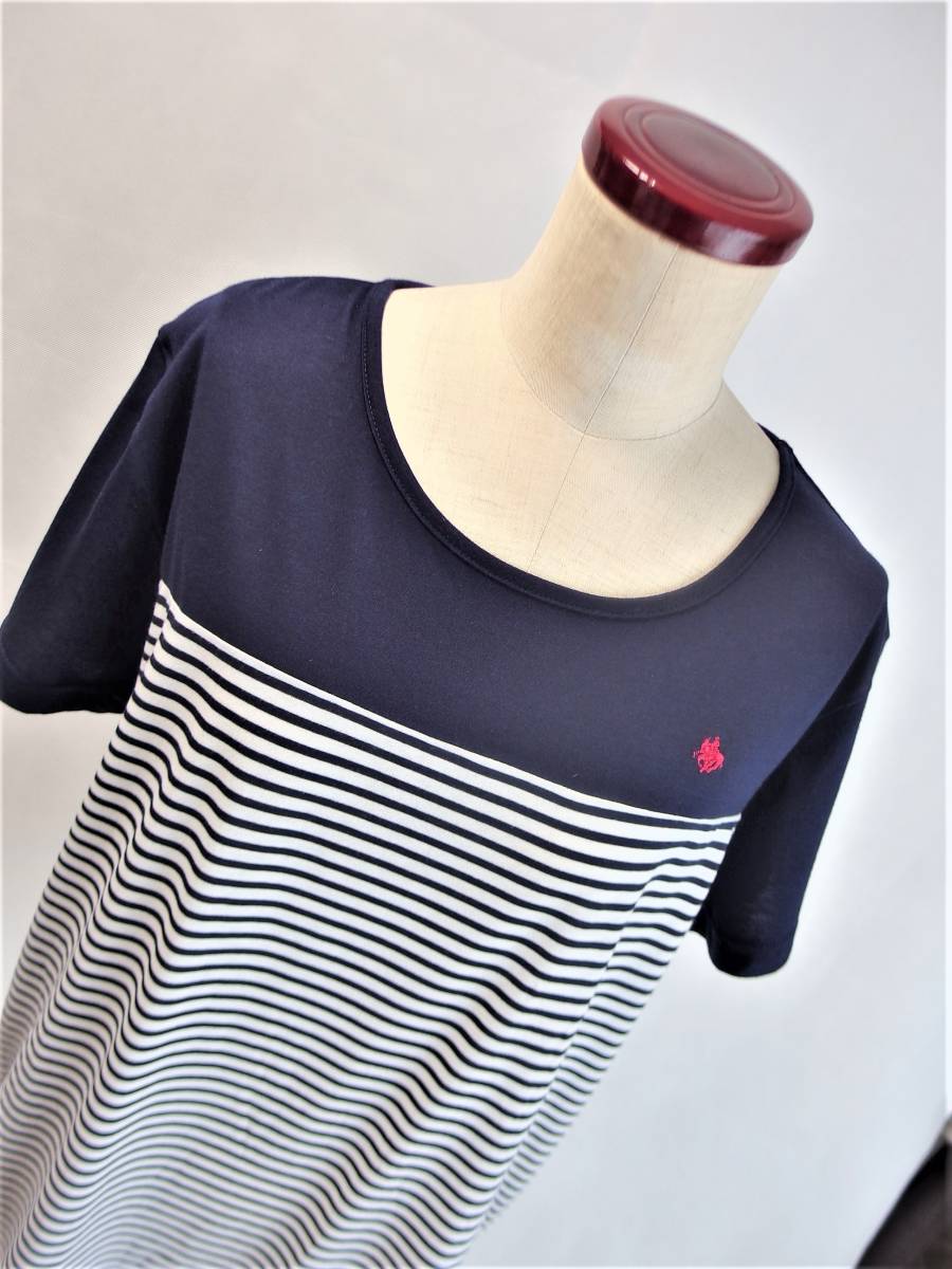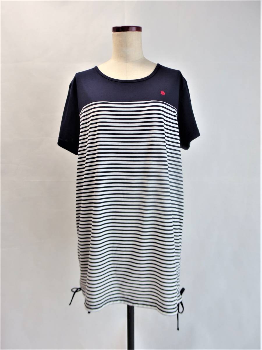 ・商品説明・ サイズ: LL( 画像は9号トルソーに着せています。) 色: 紺 ※平置きでの採寸です。 肩幅 42.5cm。(両肩を直線で結んだ線)。 身幅 53cm。(両脇を直線で結んだ線)。 袖丈 17cm。(肩~袖先) 着丈 72cm。(肩~裾) 裾幅 56cm 新品タグ付き。 ※素材表示は画像でご確認ください。 ・コメント・ 他にも出品しておりますのでご覧ください。 |