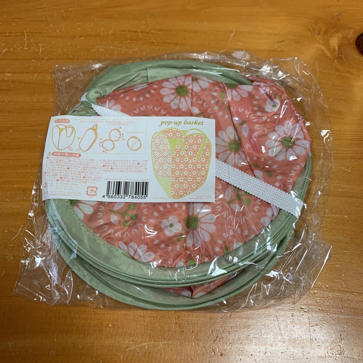 ポップアップバスケット バスケット 入れ物 ワンタッチで広がる ピンク グリーン 花柄 コスモス かわいいぬいぐるみ入れ 新品 送料無料の出品です。