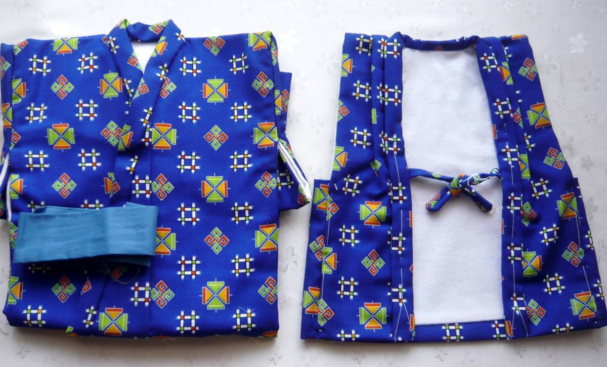 | ★ 商品名 未使用訳あり★1才~2才 一ツ身★男児 子供用 濃青 アンサンブル 毛100%? 着丈70cm&36cm ネル★一つ身 着物★1979 |