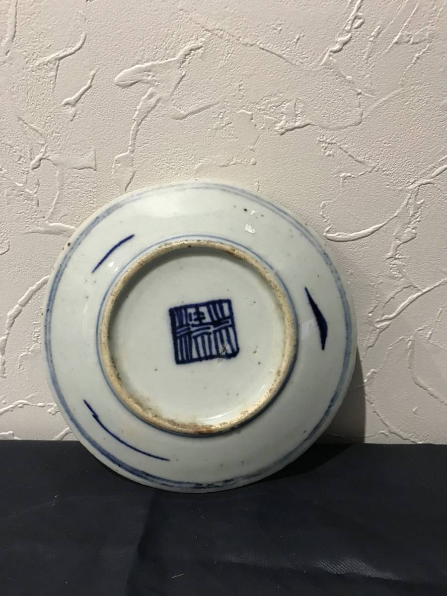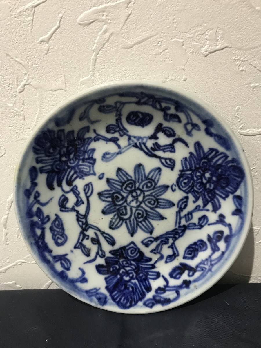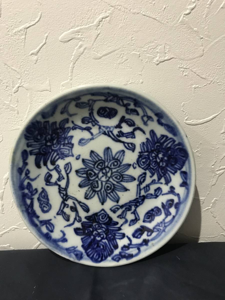 『 中国古玩 』☆ 古染付 皿 青華花唐草文