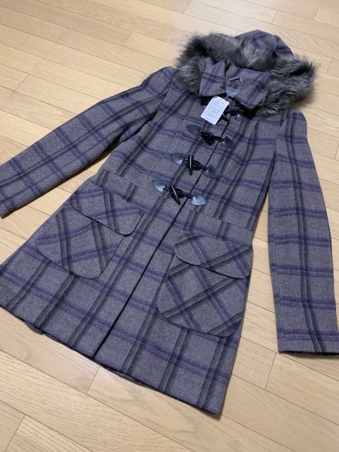 未使用品 ASHLEY 【ローラアシュレイ】フード付き チェック柄 ダッフルコート 7号 (UK8 EUR34 USA4 )