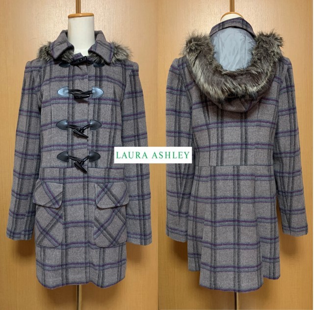 202 LAURA ASHLEY 【ローラアシュレイ】フード付き チェック柄 ダッフルコート